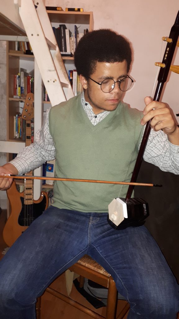 J’ai commencé à étudier la musique à 5 ans avec la contrebasse, c’est un instrument qui est assez méconnu et qui présente un caractère polyvalent indiscutable ( on peut jouer du classique, du jazz, de la country, du rock, de la musique traditionnelle chinoise ect ). J’ai eu une expérience de plus d’une décennie en orchestre en tant que contrebassiste. J’ai pris des cours de piano à partir de l’âge de 10 ans, j’ai appris la basse à 15 ans, la guitare à 20ans, le violon et le erhu à 21 ans et finalement le violoncelle à 23 ans. J’ai pu accumuler pas mal d’expérience en tant que musicien classique, jazz, funk etc jouer avec toute sorte de formations, ce qui m’a permis d’être très flexible dans mon approche de la musique de groupe.